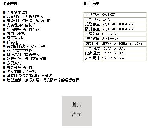 具有信號(hào)捕捉能力強(qiáng),誤報(bào)、漏報(bào)率低,低功耗和真實(shí)溫度補(bǔ)償?shù)奶攸c(diǎn)。產(chǎn)品技術(shù)含量高、制作工藝考究、外觀造型高雅,而且性能穩(wěn)定,使用壽命期長。特殊的透鏡設(shè)計(jì),無下視死角,既可墻掛式也可吸頂式安裝。配合RG93安裝支架會(huì)更加方便地施工和安裝