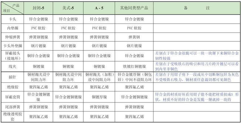 ???? 1.如果是普通的BNC頭(封閉式和美式),這種的線夾和插針是銅的(當(dāng)然也不排除市場(chǎng)上那些鐵針鍍銅或鐵質(zhì)的線夾),只有卡口彈簧和尾部彈簧(鋼材質(zhì))為帶鐵質(zhì)材料,其他部件為鋅合金,這種的BNC頭抗腐蝕能力一般般,外觀也很粗糙,我做過(guò)市場(chǎng)調(diào)查,這種的屏蔽層設(shè)計(jì)也不到位,在卡頭那里接觸不好(建議盡量不使用)。
